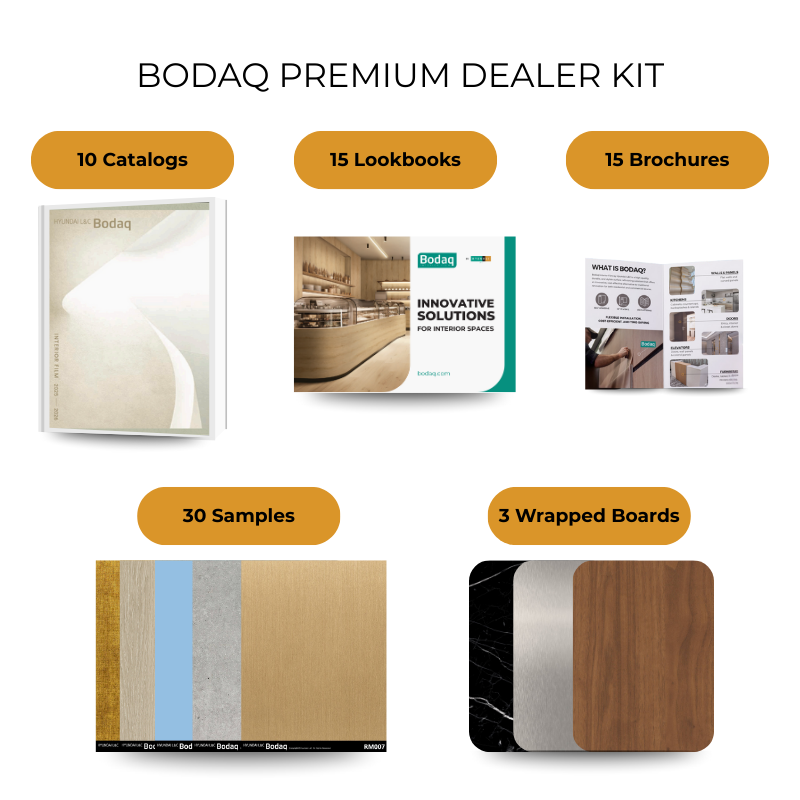 El Kit para Distribuidores de Bodaq contiene todos los materiales de marketing que te ayudarán a promover tus servicios y los productos de BODAQ.