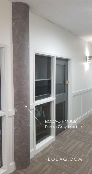The PM006 Pietra Gray Marble pattern was used to highlight the column on the opposite wall from the wrapped with the same pattern wall.